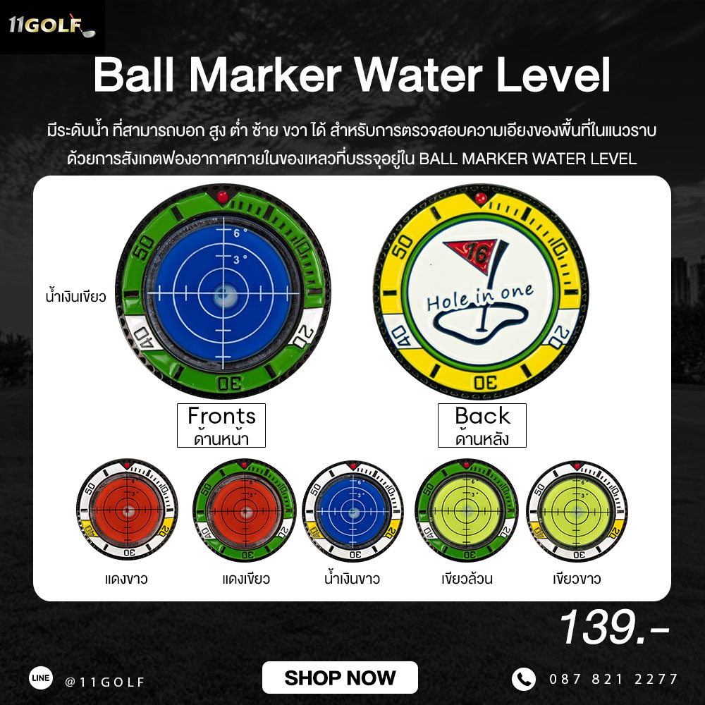 BALL MARKER Water level มี6สีให้เลือก เขียวเหลือง เขียวน้ำเงิน เขียวเเดง ขาวเหลือง ขาวน้ำเงิน ขาวเเดดง รุ่นใหม่ ระดับน้ำ สามารถบอก สูง ต่ำ ซ้าย ขาว ได้