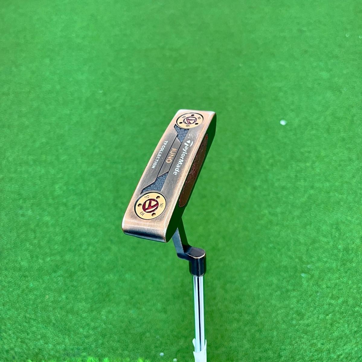 PUTTER TAYLORMADE TP COPER Collection JUNO 303 ความยาวก้าน 34 นิ้ว TP Patina Collection Collection JUNO Single Bend Shaft ช่วยให้สามารถมองเห็นใบหน้า ได้อย่างไร้สิ่งกีดขวางจากที่อยู่